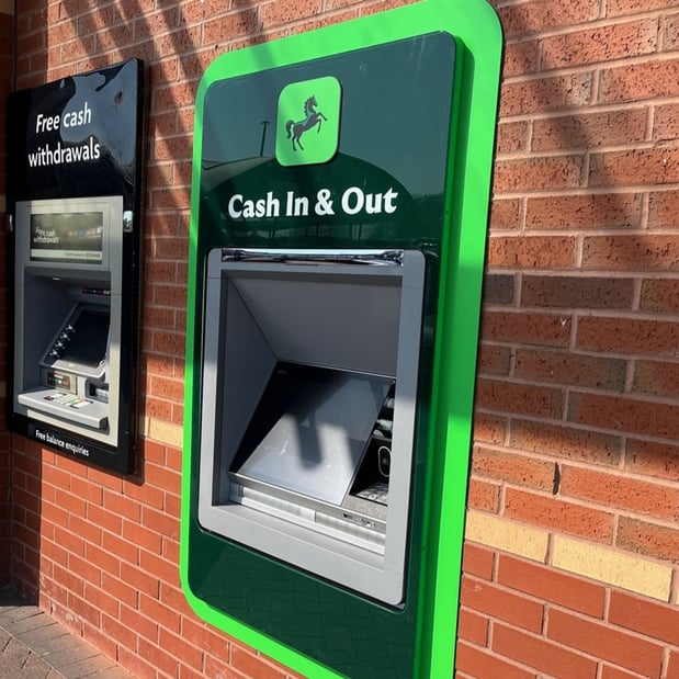 We don't charge a fee to use this machine. Cash you pay in will be available in your account immediately. To pay in cash, you'll need to enter the PIN linked to your debit card.